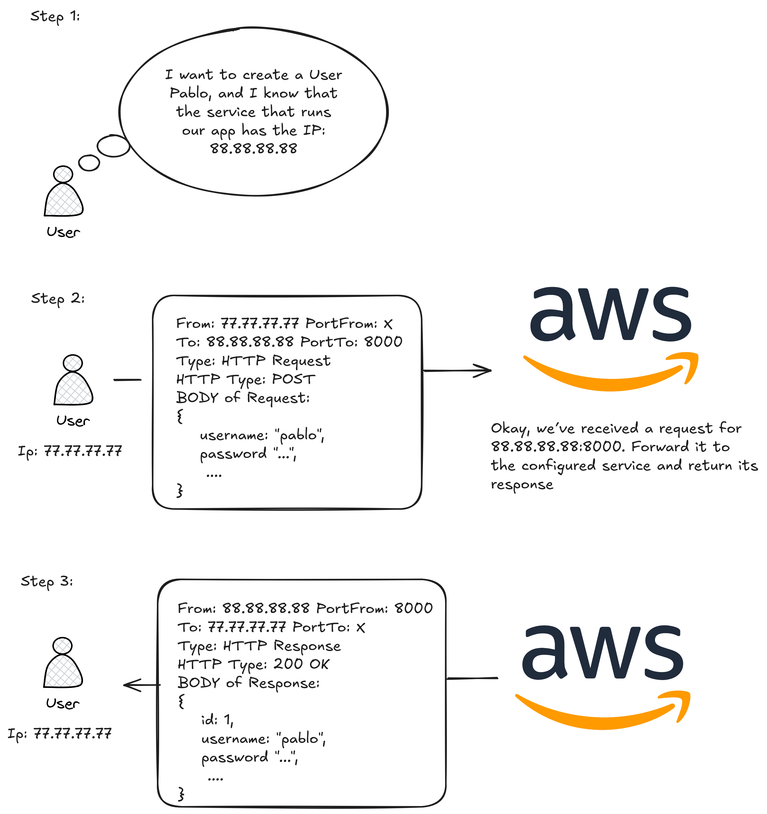 A brief summary of how the app works is shown below (using user creation (POST /users) as an example):