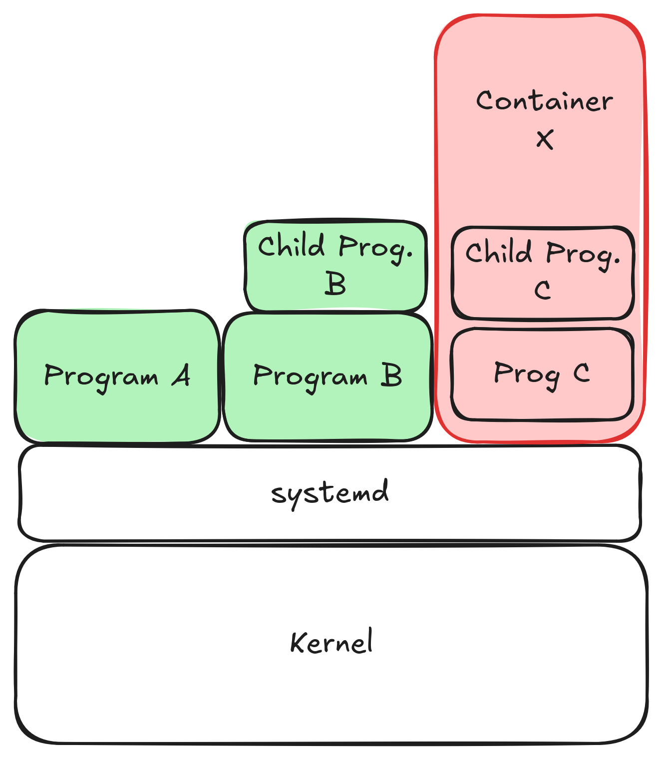 Els contenidors no aparareixen com a tals al kernel de Linux. Són una combinació de diverses funcionalitats del nucli: